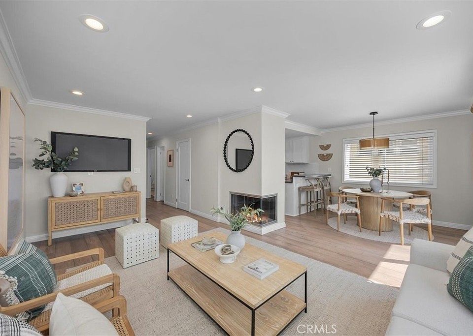 Experience the ultimate beachside lifestyle in this beautifully updated Hermosa Beach condo. Featuring two bedrooms, two bathrooms, and 953 square feet of living space, this front-facing unit captures the essence of coastal living with its private balcony and ocean views. Just one block from the sand and Hermosa Beach Pier, this home places you steps from the city’s vibrant dining, shopping, and nightlife. Inside, the freshly painted interior is filled with natural light and designed with both style and livability in mind. Ocean views can be enjoyed from the kitchen, dining, and living areas, where sliding glass doors open to the balcony, welcoming refreshing coastal breezes. A cozy gas fireplace adds warmth and character, while the kitchen is fully equipped with stainless steel appliances, barstool seating, and a natural connection to the dining area, making it perfect for entertaining. Both bedrooms are tucked privately toward the back, each offering spacious walk-in closets for exceptional storage. The primary suite features an en-suite bath enhanced by a ceiling heater for year-round comfort, while the second bedroom is served by a nearby hallway bath. Electric wall heating is provided in each bedroom, while wide plank wood flooring and recessed lighting throughout elevate the home’s modern appeal. Additional amenities include abundant hallway cabinet storage space, a shared rooftop deck with sweeping ocean views, and a convenient laundry room shared with just one other unit. The private one-car garage provides room for your vehicle along with space for surfboards, bikes, and beach gear, while permitted driveway parking adds a second dedicated spot. The city also allows you to apply for permits to park up to five cars, providing exceptional flexibility for residents and guests. Balancing location, style, and convenience, this Hermosa Beach condo is ideal as a primary residence, vacation retreat, or investment. With ocean views, abundant natural light, and a premier location steps from the pier and the beach, it embodies the best of coastal California living.