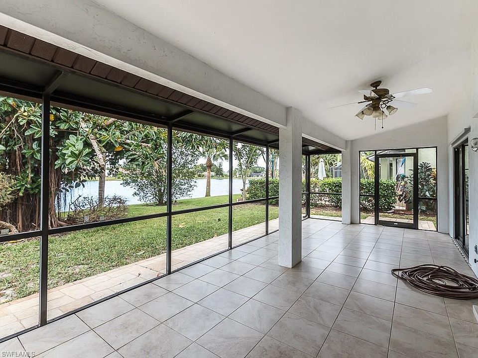 FREE HOME WARRANTY! 1 Year Worry Free! This lake front home is a must see! A charming 3 Bed, 2 Bath ranch home with a split bedroom floor plan, large kitchen with granite counter tops, upgraded cabinets, large enclosed Lanai, volume ceilings and attached 2-car garage. Spacious Master bedroom with His & Hers walk-in closets and sliding doors for private access to the lanai and more light! The master bathroom is nicely upgraded with a newer vanity, 2 sinks, mirrors, and a tiled walk-in shower with frameless doors. Enjoy a gorgeous lake and tropical trees views from the living room, dining room, master suite, and, of course, the lanai area. This is a sweet home but needs TLC. Tennis courts and lakefront fishing pier! In addition, Berkshire Village has one of the LOWEST HOA fees in Naples, just $160 per year. This peaceful community is located across the Collier County Park with Fitness, Aquatics, Tennis, yet minutes from shopping, dining, entertainments, Naples downtown, Zoo, and Naples beaches. All in all this is a terrific buy. Current School Districts: Calusa Park Elementary, East Naples Middle, Lely High schools.