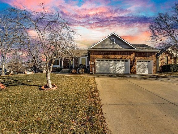 Stately Ranch on a Large Corner, cul-de-Sac lot in the sought after, Broadmoor Hills Addition in Derby. Centrally located with easy walking access to Shopping, Grocery and Restaurants. Upon entering the Foyer you'll notice the new Luxury Vinyl throughout Formal Living, Formal Dining, Kitchen and Bathrooms. Bright and Sunny Windows, with a Mid Level Walkout to Patio, with new Sliding door to the Fenced yard with Sprinkler. Kitchen Boasts a second dining area and updated Granite counter tops and Backsplash. Main floor Laundry has a built in pantry with roll out shelves and hanging space with storage cabinets. Oversized 3 Car Garage with New Garage Doors in 2021. The owners suite is sure to impress with its massive size, new pella doors to deck and remodeled bathroom. Full finished Basement with View out windows, wet bar, 2 more bedrooms and a 3rd Full Bathroom. Storage room is so spacious you can use it for a workout room, hobby room and still have more storage then you need! Lots of updates including Pella Windows with built in blinds, Pella Doors, New HVAC system 23, Roof and water softner new in 21