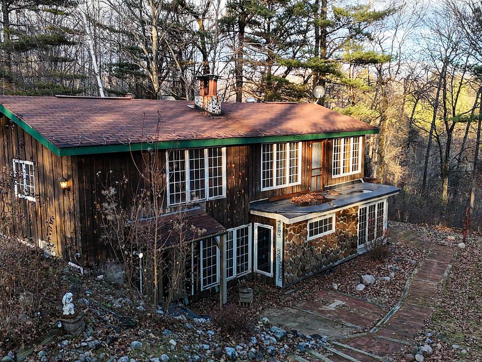 Discover this quirky, rustic Northwoods retreat set on 9.82 acres with pond access, offering peace, privacy, and endless potential! This 3BR, 1.5BA home brings lots of character. Step inside to an inviting open living room, with a cozy wood stove, connected to the open dining area and kitchen. Two of the bedrooms feature large closets and one bedroom overlooks the pond. A screened porch provides the ideal spot to enjoy morning coffee, watch wildlife, or simply take in the water views. Outside, the impressive 32' x 32' detached heated garage offers ample room for vehicles, toys, hobbies, and includes additional storage above. With 9.82 acres to explore, this property is a fun, unique escape with room to grow, create, and enjoy the outdoors. The pond is a great place for ice skating in winter or paddling in the nicer months. A truly quirky and lovable property with tons of potential…come experience its charm for yourself!