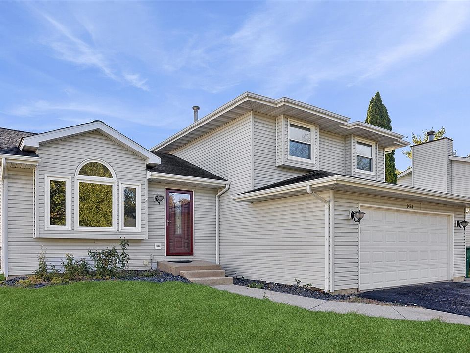 LOVE Where you live! Discover this stunning home featuring a remarkable 27 x 13 room addition that boasts cathedral ceilings, skylights, and a cozy electric fireplace-a unique find in the neighborhood! 2nd spacious family room off the garage, private dining room, and open concept kitchen and breakfast nook! The layout includes 3 bedrooms upstairs and 2.5 baths! Imagine sipping your morning coffee on the primary suite balcony! The finished basement offers versatility with options for a rec room or a 4th bedroom. The backyard is a private oasis with shed! 2.5 car attached heated garage! Come see this home today!