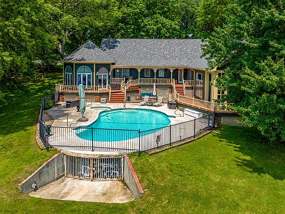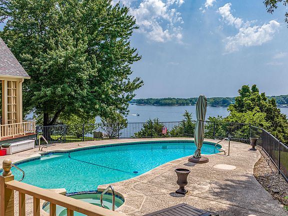 PRIME HONEY CREEK lakefront. Enjoy your own private estate! 574' of waterfront on 2.18 acres that offer fantastic lake views. This property also features an elegant main house, 5,052 SF, 4BR, 3 full/2half BA, and an 800 sf guest cottage. The spacious living room features a unique barrel ceiling, a gas log fireplace, and oversized windows with huge lake views. There is a spacious gourmet kitchen with island work area, a formal dining room with custom built-in China cabinets, a crystal chandelier, and gas log FP. The spacious primary suite features a sunroom/office that opens onto deck. Primary bath has heated air tub with aroma therapy lights, steam shower, and walk-in closets. You will love the multiple outdoor living areas, the heated in-ground swimming pool w/spa & gas fire pit. Kitchen features double ovens with pot filler, double warming ovens, built-in refrigerator, trash compactor, above and below kitchen accent lighting, and a wet bar. Laundry/utility room with sink, pantry, and built in storage located just off the kitchen. In ground sprinkler system throughout the yard, 3 Zone HVAC (electric), 2 car garage 25'x25', In-ground Pool 22'X40', 2 Gas log fireplaces in the main home and a gas fire pit pool side. Bolt Fiber Optic Internet is installed.