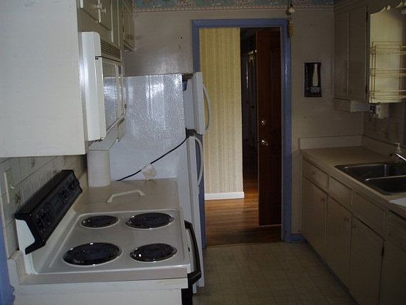 Nice brick ranch SOLD AS IS! 3 bedrooms 2.5 baths! Kitchen with vinyl floor, tile backsplash, microwave, refrigerator, and electric range! Beautiful den with paneling and built-ins! Nice size bedrooms! Rocking chair front porch and covered back porch! Fenced rear yard!