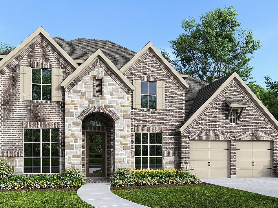 Home office with French doors and formal dining room set at two-story entry. Family room with a wall of windows and a wood mantel fireplace. Kitchen features an island with built-in seating space, a double wall oven, 5-burner gas cooktop, walk-in pantry and a Butler's pantry. Private primary suite. Primary bath features a freestanding tub, separate glass-enclosed shower, dual sinks, a linen closet and a walk-in closet. Downstairs guest bedroom. Game room, an adjacent media room and secondary bedrooms located upstairs. Extended covered backyard patio. Mud room. Three-car garage.