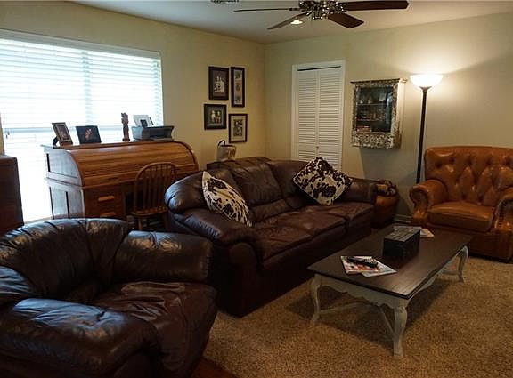 Neat 3-1.5-2 cc brick home with wood trim; Updated interior with open concept living, dining and kitchen; The dining area has a brick WBFP; Laminate floors in the living room and hallway; Ceramic tile in kitchen, dining and baths; Carpet in bedrooms; Kitchen offers a gas stove, breakfast bar, island, built-in dishwasher, microwave, vent-a-hood, refrigerator and pantry; Stackable W-D; Covered 30'' x 11'' patio; Chain link fence; Sprinkler system.