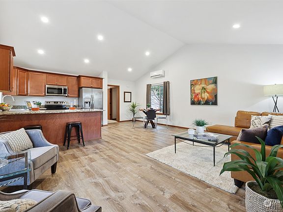 Cozy Corner Lot Rambler – Ideal for First-Time Buyers or Downsizing! This beautifully crafted 1160 sqft, 2-bedroom, 1 ¾ bathroom home is designed with both style and functionality in mind. Enjoy the modern convenience of an open-concept kitchen, granite countertops, and luxury vinyl plank flooring. The vaulted ceilings create a spacious, airy feel, while the ductless heat pump ensures comfort throughout the seasons. Built for durability and easy upkeep, the home features Hardie board siding and Trek decking. All new interior carpeting and paint. Perfectly situated on a desirable corner lot near public transportation, this property is ready to become your next chapter. Don't miss out on this exceptional opportunity!