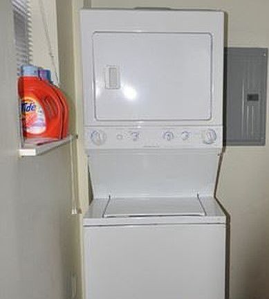 This property has a large open floor plan for the living, dining, and kitchen areas. The kitchen comes with microwave, oven, stove, and fridge. Washer and dryer unit are also in the common area. Bathroom consists of a large soaking tub and new fixtures. Bedrooms are able to fit full sized beds with storage within the bedroom and through out the rest of the property.