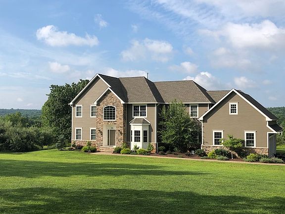 Breathtaking sunset views can be enjoyed from this pristine 3 yr young custom built colonial situated on 2.81 private acres! Greeted by a grand 2 story entry w sweeping staircase flanked by formal living & dining rms.Expansive 2 story great room w gas fireplace & lends itself to the Gourmet kitchen featuring Cherry cabinetry,center island w granite,SS appls,pantry & sliding door to patio.Entertain w ease in the banquet sized dining rm w custom millwork.French doors to 1st floor library/fifth bedrm or possible in-law suite w full bath.Retreat to the 2nd floor to the master suite boasting a spacious sitting rm,walkin closet & luxurious bath.3 add'l bedrms,2 of which share Jack & Jill bathrm complete this level. 3 car garage,professionally landscaped & full basement are add'l appointments this home offers.