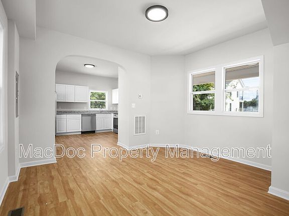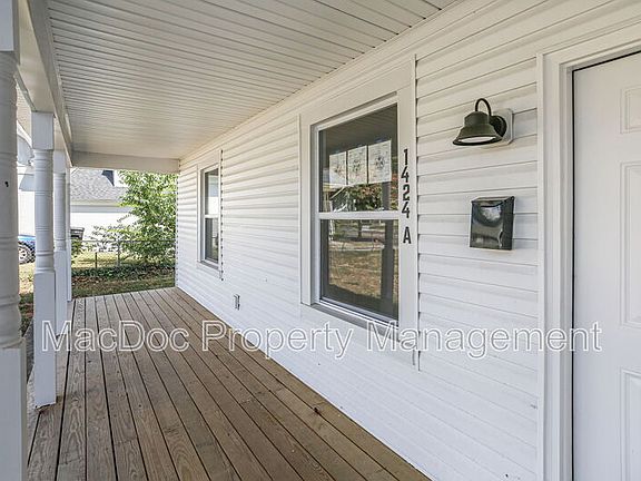 A covered side and rear porch leads you into the main level, where the kitchen and living room are thoughtfully designed for comfort and functionality. The kitchen includes upgraded cabinets, new countertops, and all-new stainless steel appliancesincluding a side-by-side refrigerator, electric range, dishwasher, and over-the-range microwave. From here, a door provides easy access to the porch, perfect for enjoying fresh air or outdoor dining. On the upper level, you'll find two well-sized bedrooms and a full bathroom complete with a tiled shower and pedestal sink. A laundry area with washer and dryer is also conveniently located on this level. For added convenience, a gravel driveway is available for tenant use, and water/sewer service is included in the rent.