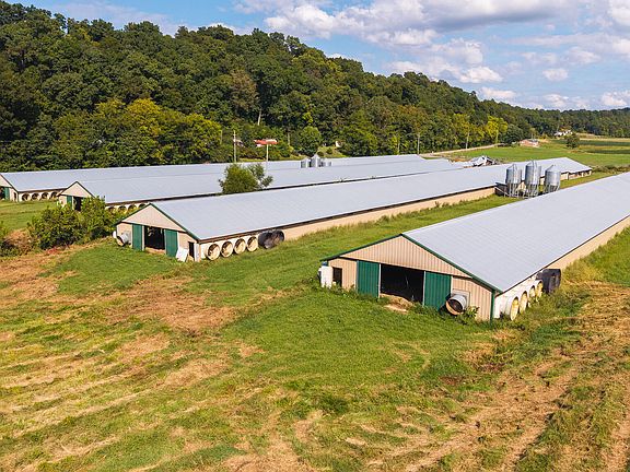 Also selling individually are four (4) 42'×500' poultry houses with associated feed bins. Important Note: The local poultry provider has indicated they will no longer supply birds to poultry houses at this location. Buyers of these improvements will be responsible for disassembling and removing the houses and feed bins from the property after closing. These structures offer value for repurpose, salvage, or relocation. The property is zoned agricultural.