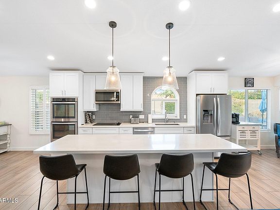 Scottsdale's most desirable neighborhood, this 4-bedroom, 2-bath home offers a rare combination of style, comfort and outdoor living. Inside, the open-concept layout features vaulted ceilings and expansive windows that offer copious amounts of natural light that amplify the elevated ceilings.