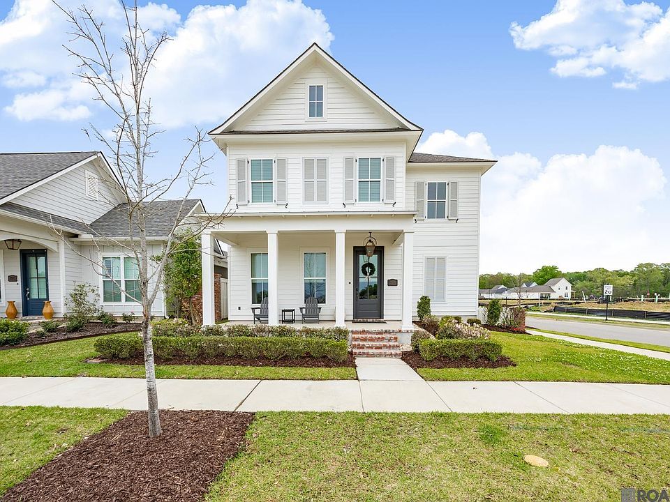 Stunning Two-Story Home in Materra Subdivision in the new city of St. George! Nestled in the vibrant and growing Materra Subdivision, this community is designed for convenience and lifestyle, that will have a town center with shopping, dining, and entertainment, as well as beautiful green spaces, a pool, cabana, and more—all while being just minutes from Woman’s Hospital, Airline Hwy, and Jefferson Hwy. Step inside to a home that exudes sophistication and style. The open concept living area is highlighted by pristine white walls and cabinetry, rich wood accent beams, gorgeous wood flooring, and upgraded lighting throughout, including a stunning French chandelier in the dining room. A charming brick fireplace anchors the living room, which features French doors that lead to a private side courtyard. The kitchen is both sleek and functional, featuring stainless steel GE appliances, a modern white vertical tile backsplash, a gas cooktop, wall oven and microwave, a walk-in pantry, and a spacious island for prep and seating. The primary suite offers a true retreat with dual sinks, black hardware, a soaking tub, a separate glass-enclosed shower, and a generous walk-in closet. Upstairs, a versatile bonus room provides endless possibilities—ideal as a game room, home office, or media space. Situated on a low-maintenance corner lot, this home delivers both style and convenience in one of Baton Rouge’s most exciting new communities. This home still has a new home warranty in place until 2027. Don’t miss this opportunity to own a home in Materra!