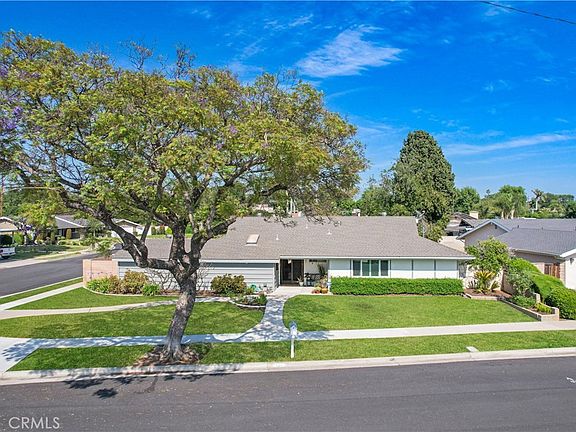 Wow! A true MID-CENTURY GEM! BEST LOT in the neighborhood, chosen by & built in 1960 by its original owner--the BUILDER of this charming track in North Tustin. This delightful home is hitting the market for the very first time, with its most unique backyard feature: a POOL and a BOMB SHELTER! Can you imagine owning this piece of history? This one-of-a-kind addition brings a touch of history and mystery to the property. (Could it be a wine cellar?) Nestled on a spacious corner and cul de sac lot, this one-story, ranch style residence has 3 Bedrooms (was a 4 bedroom-can be put back)3 Baths, and the office with more STORAGE areas than can fit all your things! The LOT provides street PARKING on both the side & front. Step inside to find a formal living room that radiates warm, mid-century charm & character, ideal for entertaining guests or enjoying quiet evenings at home with a cozy stone fireplace & views of the pool. The dining room flows into the kitchen, creating an inviting atmosphere for gatherings. You'll love the separate family room (can be converted back to bedroom making it 4 bedrooms). There is a large office or hobby ROOM ADDITION off the kitchen with wall-to-wall cabinets that can serve as a pantry with MORE STORAGE than you can imagine. The primary-suite, is a complete retreat, with a walk-in closet, a dressing area with built in STORAGE & DRAWERS, and a private door leading directly to the POOL—imagine starting your day with a refreshing swim! SOLAR PANELS installed in 2018 keep the utility bills down! Mature trees provide beauty and shade and there is plenty of space for your vegetable garden on the side of the house. The property was REPIPED with PEX piping and the MAIN SEWER LINE rehabilitation was completed in 2020/2021. A remodel was completed in 2017/2018 which consists of the ELECTRICAL PANEL installation with 200AMP, new box, new breakers and switches, up to code: bathroom remodel with plumbing and electrical up to code, new walk-in tub installation. There's a wonderful walking trail just behind the house and the property is also walking distance to Guin Foss Elementary School, Peace Church and the School for the Blind. Located in the heart of Tustin! Close to the quaint historical downtown Tustin, and plenty of shopping, restaurants and close to the 5 and 55 freeways for easy access to anywhere in Orange County! With a pool ready for summer fun and a spacious 2-car garage, this home truly has it all—schedule your showing today!