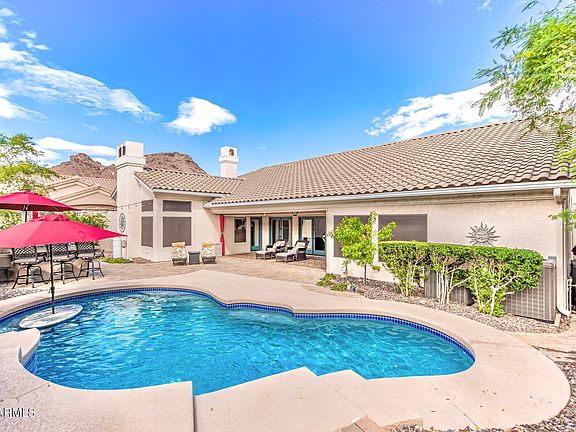 The view of this outside oasis of character, invite all to step into a luxurious entertainers dream complete with a Baja Grill and Bar. The peaceful setting evokes a resort lifestyle and the pool is heated for year around use. Inhale the fresh air and fragrance of mature fruit trees while enjoying privacy and a view of Lookout Mountain. Enjoy a cup of coffee in the morning or glass of wine in the evening with friends around the fire pit or table inside the pool! Of perhaps you prefer solitude with a good book as you lounge poolside in the Arizona sun.