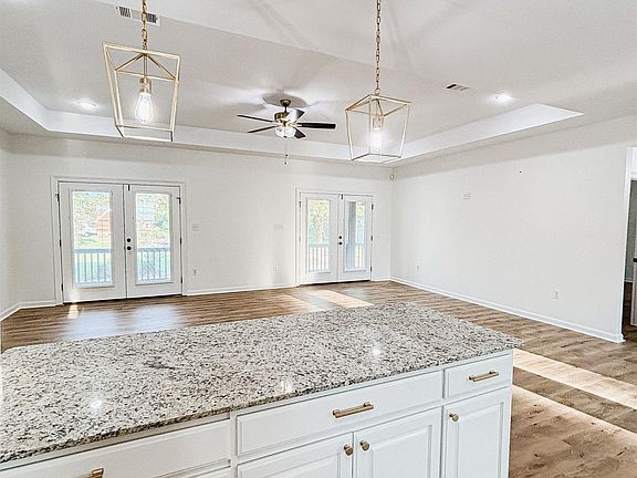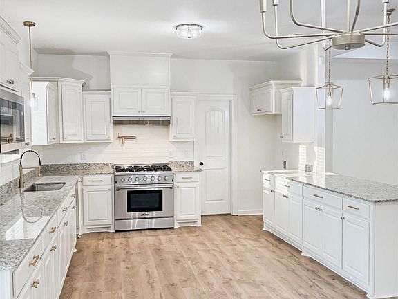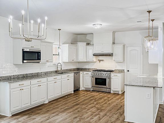 Gas stoveCustom cabinetsGranite countertopsOpen split floor planFront and back porchCustom tile surround tubDouble vanity