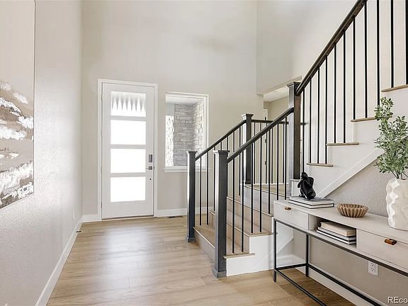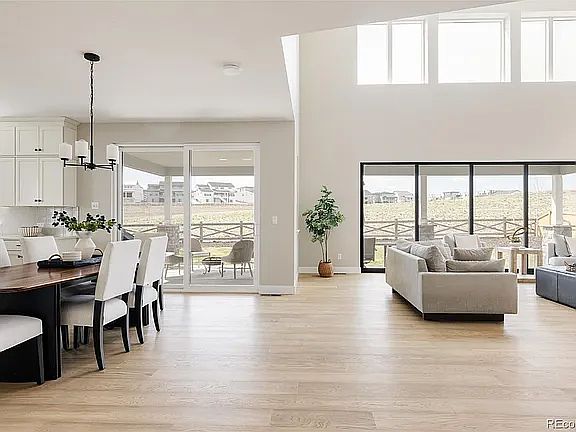 Luxurious 6105 sq. ft new 5 bed 5 bath home backing to open space in the desirable Trails at Crowfoot neighborhood! Built by EPIC Homes this truly impressive home showcases thoughtful design and high-end finishes, boasting 10ft ceilings with an expansive vaulted great room. A 20-foot wall of stacked sliding doors connects the indoors to a large patio and private backyard ideal for Colorado entertaining.