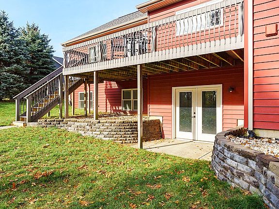 You will feel at home when you walk through the door. Beautiful custom craftsman style home with an open floor plan and a walkout finished basement, two master en suites, Chelsea Plank Cherry flooring, custom Maple kitchen cabinets with quartz counter tops, under cabinet lighting and a farmhouse sink. Other features include: Marvin windows and French Doors, crown molding, oil- rubbed bronze finishes, Corain counter tops and solid core doors. Great room has a 12' vaulted tongue and groove ceiling with a stone gas fireplace and custom cherry mantle. 9' ceilings throughout the rest of the home. Lots of storage space on the main floor, in the basement and in the garage. Trex decking with wrought iron spindles. Other floor coverings are slate, tile, carpeting and laminate. Stainless steel appliances. New natural palette paint throughout the main floor and new carpeting in the additional bedrooms. Move in ready.