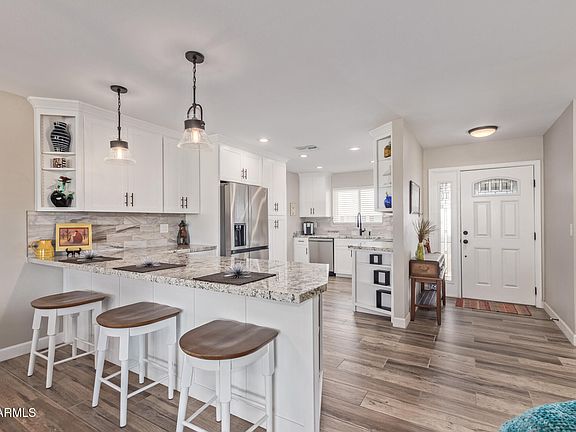 Open floor planRecessed lightsManicured landscapeBreakfast barHuge windowsTile backsplashSs appliances