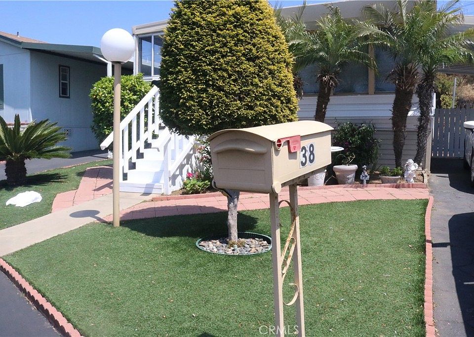 Welcome to this charming mobile home located in the 55+ senior community of the Palace Garden Mobile Home Park. This home has tons of curb appeal landscaped with plants all around and low maintenance artificial turf. It boasts 2 bedrooms and 2 baths and a carport with enough parking for 2 vehicles. When you walk up there is an enclosed porch where you could sit out and enjoy the breeze from the bay. It has natural light from the large windows in the front living area and there is an eat in kitchen with the family room attached. The skirting around the outside was recently replaced and the home is well maintained. The park is pet friendly but restrictions apply. There is a community pool and clubhouse and the home is close to shopping and dining. Come out see this gem and you won't be disappointed.