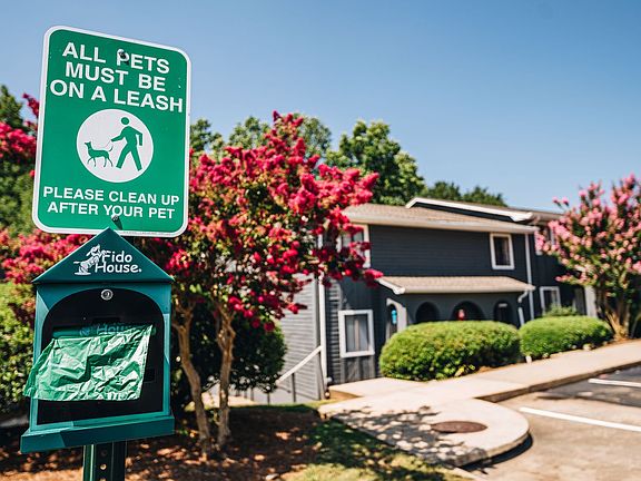 Plank flooringTile backsplashGranite countertopsPet waste stationsLarge walk-in laundry roomCarpeted bedroom