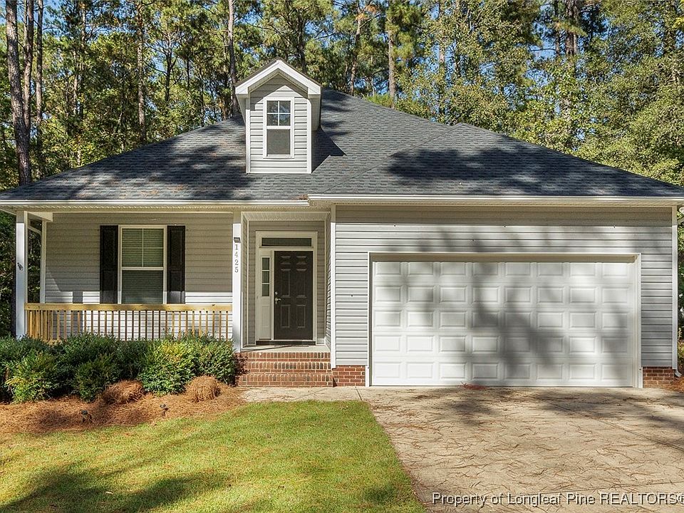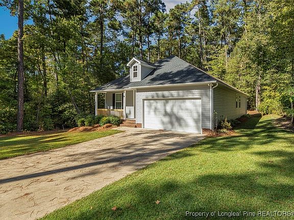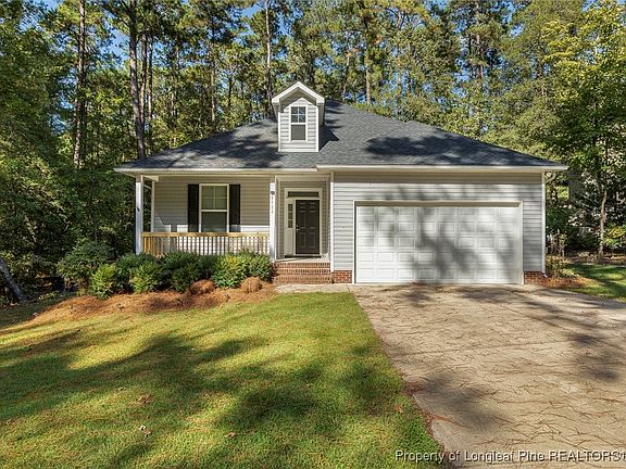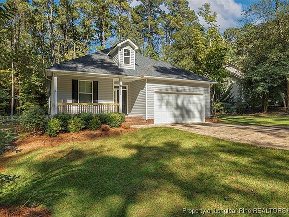 Adorable home located in the gated and golf community located in Carolina Trace. This 6 year old home has been well cared for and looks brand-new. Greeted with natural light in this open floor plan home offers a welcoming feel. The heart of the home is the kitchen! This eat in- kitchen offers plenty of space, lots of counters space and cabinets, a coffee nook, large pantry, and a HUGE peninsula for entertaining. Easily flowing into spacious living room with a cozy fireplace. Formal Dining room off the kitchen which could also act as an office or den. Primary bedroom is nice sized that could easily accommodate a king sized bed and furniture. Primary bath has duel kink vanity, walk-in shower, and walk-in closet. 2 additional bedrooms and full sized bath for kiddos or guest! The lot of this home is nestled amongst the trees and in walkable proximity of the neighborhood community pool and tennis courts. This property is a must see.