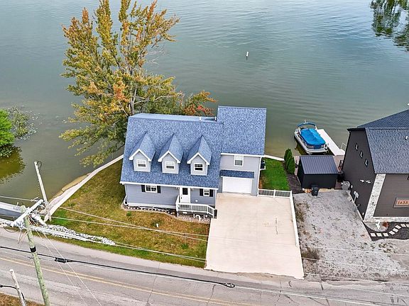 Lakefront Luxury! Nestled at the unique corner of Westler & Witmer Lakes, this beautifully built lakefront home is a rare find! Enjoy breathtaking water views and abundant natural light from every window in the house. This turn-key 3-bedroom, 2-full bath home features an open-concept layout with granite countertops, walk-in showers, 6-panel doors, a tankless water heater, and stainless steel appliances. The built-in security system, and metal pier are all included for added convenience. Upstairs, one bedroom boasts access to a charming 3rd-level bonus room, perfect for a cozy hideaway, office space, or added storage. Step out from the spacious living room onto the 20x10 elevated deck, where you can relax while soaking in panoramic views of both the channel and the main lake. Enjoy the best of both worlds—quiet lakefront serenity in the back, and water fun in the front! Located on the 5-Lake Indian Chain, this property gives you access to 680 acres of year-round recreation, including 2 all-sport lakes (Witmer & Dallas) and 3 fishing lakes. This is the lake life you’ve been waiting for—move-in ready and made for making memories year round or seasonally!