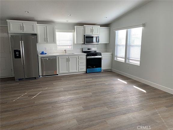 Brand new 2025 Cavco Canyon Lake manufactured home. This 2 bedroom, 1 bath features an upgraded kitchen package including hardwood cabinets, quartz countertops, stainless steel appliances, 3-door pantry, and and undermount kitchen sink. Bathroom also includes quartz countertops and undermount, rectangular bathroom sink. Additional upgrades include: Mirrored closet doors in both bedrooms, 2' Faux Wood blinds on the windows, ceiling fans in living rooms and both bedrooms, recessed lighting, and hookups for a stackable washer/dryer. Flooring includes carpet in bedrooms and living room, vinyl plank throughout remainder of home.