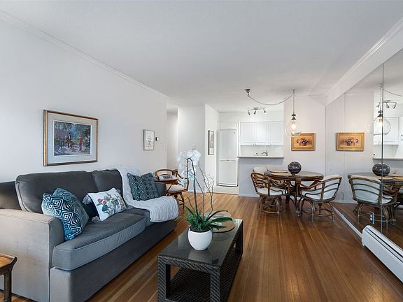 Fabulous one bedroom at Oceanbrook in the heart of Ambleside! With updated kitchen, appliances, bathroom and gorgeous hardwood flooring, there is nothing to do but move in! 595 sq ft plus an enclosed solarium for a total of 616 sq ft of living space! Excellent option for those wanting a fabulous location and amenities! Walk to Ambleside beach, West Van seawall, restaurants, transit, banks, medical clinics, and shopping! Resort style amenities include both indoor and outdoor pools, sauna, swirl pool, exercise room, bike storage, and a large common party room! Low maintenance fee includes heat, hot water, laundry, cable and amenities! Whether looking for a full-time residence or a pied-a-terre this one is a must see! Have your agent set up a viewing today!