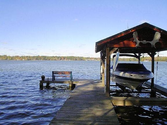 Yes, you can be one of the few to own a magnificent home on a premier location on the premier lake of the famous Eagle River Chain of 28 lakes. Some call this Boathouse Row in the nostalgic Everett Colony. A Western view, perfect level sand beach, permanent pier with covered boatlift, and a stone fire pit are just a few of the outdoor treats in store for you. What about the home? This well designed home sits just 60' from the water and has gorgeous views from every room. The exterior is cedar and stone and contains an insulated, attached 3 car garage. The interior has a great room with cathedral ceiling, lots of glass and a stone fireplace. The gourmet kitchen has rustic birch cabinets. The large family room in the walk out basement has a special stone fireplace that will hold its heat for days. The cost to heat this home is unbelievable. Each room in the home is wired for sound and has individual controls. The system stays.Take a look today.