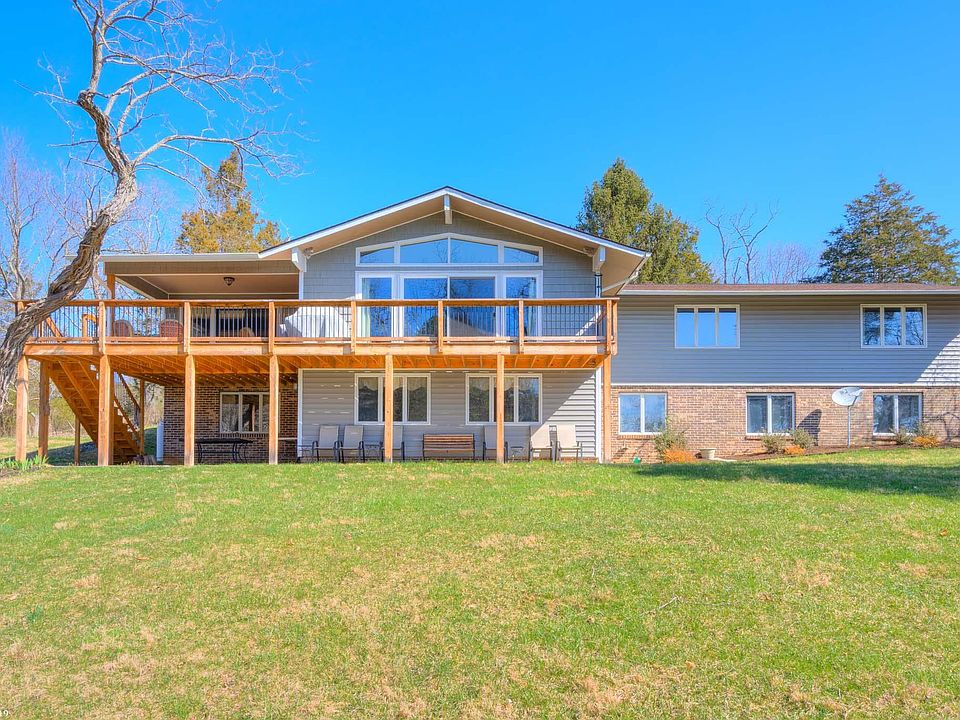 Contemporary two-level home situated just minutes from town yet private! Main floor has vaulted ceilings in the living room with floor to ceiling windows for abundant light viewing wooded scenery & a beautiful brick fireplace. It also consists of a large open kitchen, large island with breakfast seating, tile backsplash, plenty of cabinetry & a pantry room nearby. The dining room is open to living & kitchen w/ access to the covered deck. There is also a master bedroom on the main with a private bathroom & closet, as well as, an additional full bath for guests. The basement has four additional bedrooms, one full bath, & a large family room for entertaining! The laundry room has plenty of shelving, a wash sink & room for other storage. This property is full of adventure! Surrounded w/ beautiful mountains and many shade trees! Partially fenced field & barn, perfect for walking or a few horses. There are 3.2 miles of hiking trails w/ two park areas & one playground in the neighborhood.