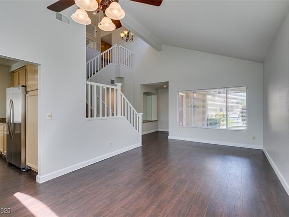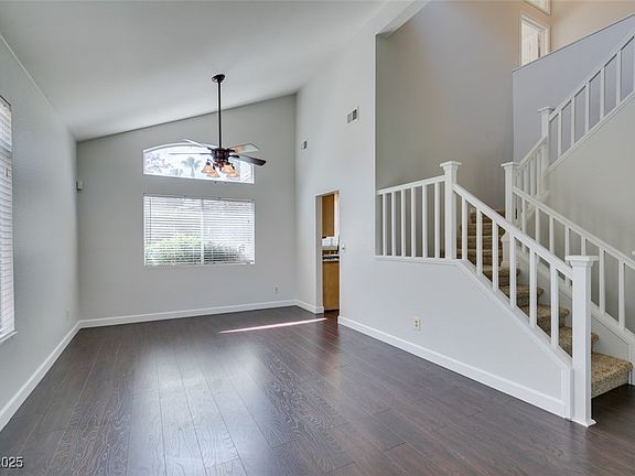 This gorgeous four-bedroom, three-car garage home is nestled in a gated community in Peccole Ranch. Located on a cul-de-sac street, it boasts freshly painted walls and vaulted ceilings throughout the downstairs. Laminate flooring covers the entire lower level. The kitchen features granite countertops and stainless steel appliances. The primary bedroom has a balcony, while the primary bathroom includes dual sinks, a separate tub, and a shower. The secondary bedrooms are generously sized. The nicely landscaped backyard features a covered patio with pavers and synthetic grass.