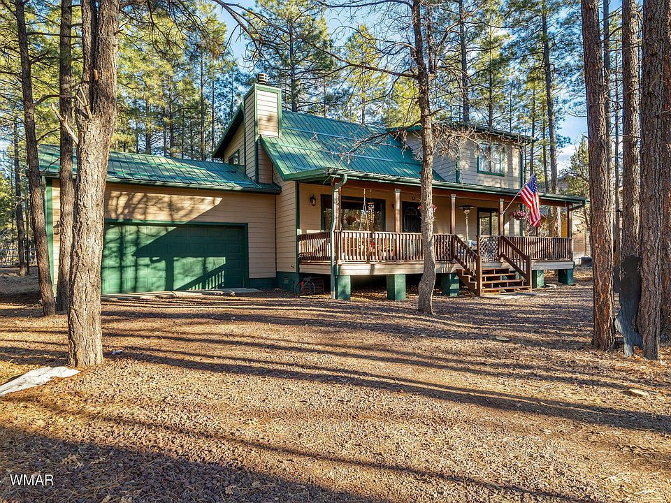 This AMAZING MOVE-IN READY Mountain Retreat on a peaceful pine-covered culdesac lot (nearly ½ acre) in the heart of Pinetop/Lakeside with NO HOA checks ALL the boxes! Updated and well-appointed offering a wealth of desirable features and charm in a turn-key package for the discerning buyer. Incredible open and bright floorplan with expansive glulam beams and vaulted ceilings with a relaxing red-brick fireplace features 3 bedrooms, a spacious loft and 2 1/2 baths with 1753 square feet to enjoy. Stunning open-concept kitchen designed for serious cooking highlighted with hardwood oak cabinetry, brushed nickel hardware, gorgeous granite counters, subway tile backsplash and high-end stainless appliances including a five-burner gas range, built-in microwave, stainless side-by-side with multiple drawers and a stainless dishwasher with the perfect pantry. Durable engineered wood plank flooring across most of the home. Fresh interior paint, wood-stain package throughout with wood stair railing, wood window sills, dual-pane windows, 2" wood blinds, wood shutters, newer water heater and A/C furnace to keep you cooler on the warmest days, WiFi thermostat, alarm system prewire, updated fixtures and ceiling fans further enhance the home and provide comfortable living. Owner's retreat conveniently located on the main floor with the adjacent laundry room that includes the washer and dryer. Adding to the magic, the home is protected by a hard-wearing vinyl siding and a solid metal roof with a professional gutter system. Incredibly quiet and oversized culdesac lot surrounded by tall Ponderosa Pines, Spruce Pines, Alligator Juniper trees and beautiful Oaks with a relaxing sizable front covered porch with a porch swing and a rear French door that leads out to a generously-sized deck and a fenced yard including a convenient storage shed. You will also appreciate the oversized two-car garage with 10' high ceilings and ample space to store your SUV and all your additional outdoor gear.