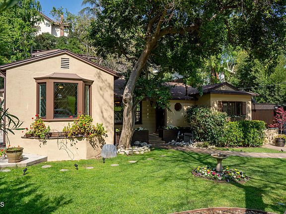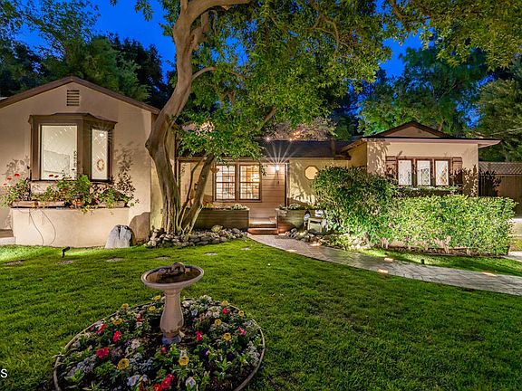 Price improvement! Located in the prestigious and coveted Verdugo Woodlands, this one-of-a-kind, turnkey 4-bedroom, 2.5-bathroom home boasts 2,114 square feet of living space on a sprawling 14,000 square foot lot. Tucked away on a quiet hillside, in an idyllic treelined neighborhood, this impeccably landscaped property is resplendent with lush hedges and towering trees, terraces, patios, decks, ponds and a sparkling pool and spa. The ample privacy makes for an entertainers dream, complete with a full-size outdoor BBQ kitchen, perfect for dining al fresco or hosting gatherings surrounded by magnificent mountain views. As you step inside, the warmth of the hardwood floors, freshly painted interior, vaulted ceiling, and brick fireplace in the living room create an inviting atmosphere and a seamless blend of thoughtful updates coupled with classic charm. A beautiful, bright, and updated kitchen with dining area and oversized pantry are timeless, functional, and inspiring, with French doors leading out to the grounds. The primary bedroom and oversized ensuite bathroom have double sink vanities, large shower and double closets. The spacious bedrooms are private, and light filled, with views from every window. The most delightful room of all is the wood paneled, beamed ceiling den with a wet bar, floor to ceiling windows, French doors and sizable deck to take in the marvelous scene below. With updated systems, a newer roof, newer windows, and a stand-alone two-car garage with storage, this home is not to be missed. A home as special and well cared for as this one, is matched by an equally lovely community, peppered with fantastic hiking and biking trails, and the exclusive Oakmont Country Club, Verdugo Park, Catalina Verdugo Adobe, and the renowned Verdugo Woodlands Elementary School in the blue ribbon Glendale Unified School District. Don't miss this rare find.