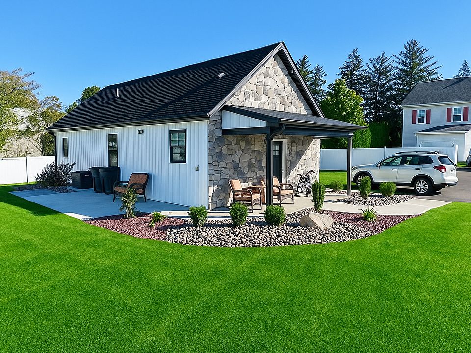 NEW CONSTRUCTION Ranch style home with many unique features that are hard to come by is now available for rent. This modern ranch will WOW you the moment you step in. Welcome to one floor living inclusive of 2 bedrooms 1.5 bathrooms and plenty of luxury features other builders skip out on. Hardwood floors, customer closets and SOLID wood doors throughout. Vaulted ceilings in living room. Large eat in kitchen with custom soft close 2 tone cabinets wrapped in quartz counters and finished off with a tile backsplash and dark hardware. Pendant lighting over island. All LED lighting throughout with ambient nightlight features. Custom blinds on all windows. Large windows for that natural light. Master bedroom with ensuite full bathroom. Custom tile shower. Laundry closet with washer/dryer included in hallway. Gas heat, Central AC. Off street parking. Rear concrete patio perfect for summer BBQs. Located in a very desirable quiet neighborhood set back off the Main Street with private 2 car off street parking. Pictures don't do this house justice, you must come take a look at what this new construction home offers. Where else can you find this? 2 Year lease preferred. Professional interior photos coming soon!