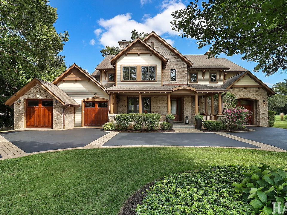 Welcome to 1425 Lee Road-an extraordinary custom-built residence in coveted East Northbrook. Offering more than 7,000 square feet of exquisitely designed living space, this elegant home features five bedrooms, five full bathrooms, and three powder rooms-an ideal setting for comfortable everyday living and stylish entertaining. A grand foyer sets the tone with a winch-mounted chandelier and a custom wood and glass front door flanked by sidelights. Thoughtful architectural details enrich every room: 10' ceilings on the main floor, arched entries, 8' solid core doors, 7.5" baseboards, and rich oak flooring throughout. Just off the foyer, a gracious dining room awaits, perfect for hosting large gatherings. Decorative sconces add ambiance, while French doors open to the inviting front porch. The adjacent butler's pantry includes a granite countertop, beverage refrigerator, and glass-front cabinetry-combining elegance and functionality. The heart of the home is the expansive great room, accessed through double arched doorways and anchored by a wood-burning fireplace with stone surround and gas setup. Custom built-ins and crown molding complete the space, while French doors open to a bluestone patio that spans the entire back of the home and overlooks the expansive backyard. Designed for culinary excellence, the chef's kitchen is outfitted with granite countertops, 60" cabinetry, two sinks, dual ovens, coffee garage, pull-out pantry, walk-in pantry, toe-kick vacuum, and a built-in desk. Premium appliances include a Wolf gas cooktop with pot filler and granite backsplash, two Miele dishwashers, and a separate Sub-Zero refrigerator and freezer. Casual dining is effortless with peninsula seating and an airy eat-in area. Directly off the kitchen, a stunning four-season sunroom impresses with rough-sawn cedar walls and a cathedral ceiling, walls of windows, a stone fireplace, a ceiling fan, and walkout access to the patio. Surround sound carries through the interior and exterior, perfect for entertaining. Also on the main level is a private bedroom or home office with sliding doors to the patio and an adjacent full bath. A mudroom with custom built-ins, a separate laundry room, and two powder rooms complete the main floor. Upstairs, double doors lead to a serene primary suite-an expansive 22' x 25' retreat featuring a fireplace, ceiling fan, private balcony, and three generous closets, including two walk-ins. The spa-quality en-suite bath offers a walk-in steam shower, dual vanities with granite countertops, Robern heated medicine cabinets, a Bain Ultra jetted tub, heated floors, fireplace, separate water closet, and motorized Hunter Douglas shades. Four additional bedrooms on the second floor each boast walk-in closets with California Closet systems. Two have private en-suite baths, while the other two share a Jack and Jill bath with dual vanities and a skylight. A second laundry room on this level features granite counters, ample cabinetry, and a utility sink. The third floor provides even more flexible living space, with a massive bonus room and generous storage-ideal for a playroom, studio, or private office. The finished lower level adds exceptional versatility, offering a spacious recreation and media room, a beverage center with sink, an exercise room with rubber flooring, mirrored walls, and a ceiling fan, a half-bath, heated floors, ample storage, and private stairs leading directly to one of the two attached garages. Additional features include: central vacuum system, three furnaces with electronic air cleaners, 400-amp electrical service, two separate garages with epoxy floors, battery backup sump pump, security system, Pella windows, recessed lighting, in-ground sprinkler system, and pre-wired for an electric dog fence. This remarkable home blends timeless design, quality craftsmanship, and exceptional amenities in one of Northbrook's most sought-after locations-a truly perfect place to call home.