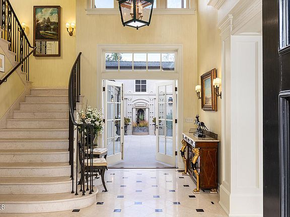 Nestled in the prestigious Huntington Library and Gardens neighborhood of Pasadena, this distinguished English Regency-style estate, designed in collaboration with the architectural firm of Tichenor & Thorp and noted Designer, Joe Nye is a masterclass in architectural refinement and modern luxury. Inspired by the elegance of Regency design, the home and pool house span an impressive 9,650 square feet, showcasing impeccable craftsmanship, grand proportions, and exquisite finishes.Bathed in brilliant south-facing light, the estate boasts soaring ceilings over 10 feet high, creating a sense of openness and grandeur. The thoughtfully designed chef's kitchen is a culinary dream, featuring an expansive island, top-of-the-line appliances, and abundant storage. Each of the five generously sized bedrooms offers an ensuite bath, walk-in closet, and impeccable detailing, while the primary suite is a private sanctuary, complete with a sitting room, a lavish marble-clad bathroom, and a spacious dressing room.The home is adorned with five imported English fireplaces, lending warmth and gravitas to the refinement of the living spaces. Intricate Regency-inspired beading and reed work embellish the ceilings, while a striking domed ceiling graces the primary suite. Hardwood and stone flooring seamlessly blend classic elegance with contemporary appeal, enhanced by custom lighting fixtures that further elevate the estate's aesthetic.Set on an expansive three-quarter-acre lot, the lushly landscaped grounds are a private oasis, featuring a grand pool and spa, a pool house, and a charming cabana. Thoughtfully designed along precise north-south and east-west axes, the estate offers breathtaking sight lines from one end of the property to the other. A series of enchanting outdoor rooms, complete with an arched rose trellis, statuary, a demi-lune bench, and flourishing fruit trees, create an idyllic setting for entertaining and relaxation.The elegantly finished lower level offers an Art Deco-inspired media room, a state-of-the-art gym, a wine cellar, and abundant storage. Think Savant, Sonos, Apple, Lutron and more. The attached two-car garage is complemented by a spacious motor court with parking for three additional vehicles.Move-in ready and meticulously designed, this estate is a rare blend of historical grandeur and contemporary comfort--an extraordinary residence that embodies timeless beauty and unparalleled sophistication.