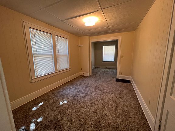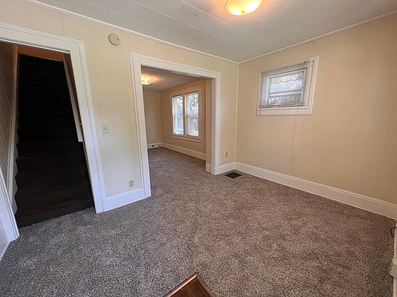 3 bedrooms and 1 bathroom; stove and refrigerator provided. No garage (Off street parking), no ac, no dishwasher. Newer windows and carpet.
