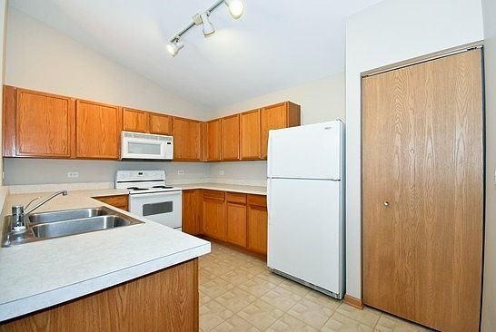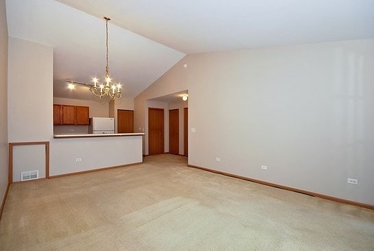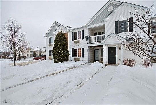 Sunny one bedroom one bath 2nd floor condo in Prairie Point. Spacious living room and dining area with vaulted ceilings. Large bedroom with walk-in closet. Balcony off living room has lovely view of nature area and storage room. Large fully applianced kitchen. In-unit full-sized laundry. Newly painted throughout. Pet friendly. Built in 2004. Close to Prairie Path, Outlet Mall Shopping Center, Metra, and I88.