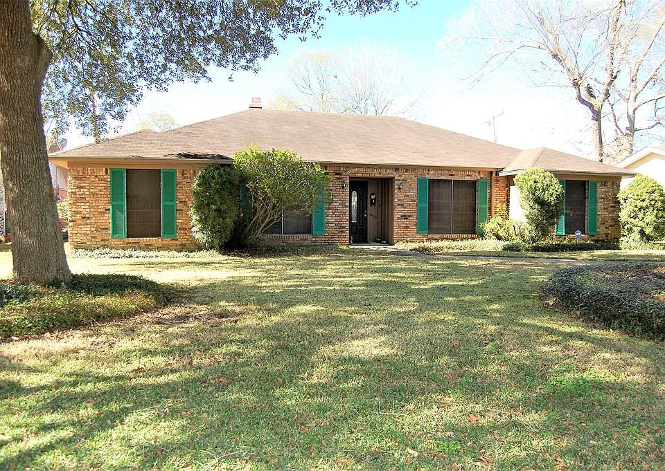 3/4 brick veneer ranch home, over 2,000 sq ft w/3 bedrooms, 2.5 bathrooms, formal living room, formal dining room, eat-in kitchen, &spacious den w/cathedral ceiling, exposed brick wall & wood burning fireplace. Covered patio which overlooks a landscaped backyard surrounded by a complete privacy fence. There is a covered walkway that leads to a detached double garage w/attic storage. The master bedroom has a sitting area, en suite w/2 walk-in closets, an additional closet in the rear corner of the bathroom, stand up glass door shower, jetted garden tub, a makeup desk/dressing area, 2 individual vanities w/large mirrors & overhead lighting. Lots of closetspace in each bedroom. The kitchen has a generous number of wooden cabinets, built-in microwave over a built-in oven, Jenn-Air gas cooktop w/both indoor grill & griddle assembly & French door refrigerator w/door access water & ice. Laundry area has built-in cabinet,built-in desk w/overhead cabinets & half bathroom.
