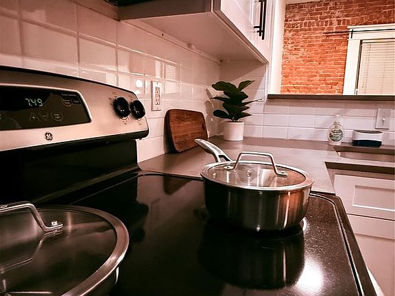 Exposed brick wallsSleek stainless steel appliancesUpdated kitchenSpacious closetRich hardwood floorsSliding barn doorWindow-mounted air conditioning unit