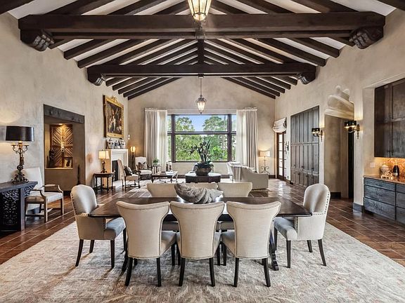 Nestled within walking distance of The Lodge at Pebble Beach, this magnificent Spanish-style estate radiates timeless elegance and unmatched sophistication. From the moment you arrive, the gated entrance welcomes you to a stunning pavered driveway bordered by limestone walls, setting the tone for unparalleled luxury and privacy.