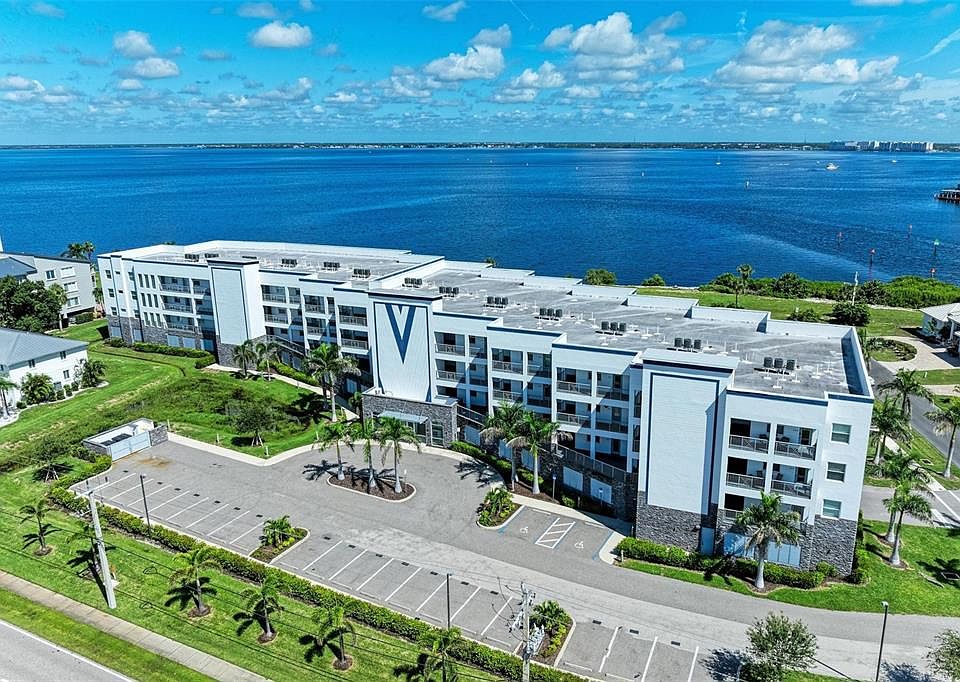 Don't miss out on a front row seat to all of the great summer shows on the harbor from your balcony, including fireworks on the 4th of July! TWO PARKING PLACES! Gorgeous TOP FLOOR UNIT at Paradise Pointe, Punta Gorda Isles' newest LUXURY CONDO COMPLEX with UNOBSTRUCTED VIEWS of CHARLOTTE HARBOR, SUNSEEKER RESORT, FISHERMEN'S VILLAGE, and more! TONS OF UPGRADES and customizations await in this unit, with beautiful plantation shutters, upgraded light fixtures, high-end appliances, added electrical components for ease of use, updated plumbing fixtures, and new paint!. It also has 2 under building parking spots-SPACE 5 &6 with 4 storage containers! Each unit has 174 square foot covered & tiled balconies overlooking the harbor with a wall of impact rated pocket sliders that open up the interior of the unit to the outdoors. Inside, find 24"x"48" porcelain tile throughout with solid wood doors, quartz counters, soft close cabinetry, custom trim work and ceiling details, fans both inside and outside, with a great layout where every square inch of space is utilized perfectly. The guest bedroom has an en-suite bathroom and walk-in closet, as does the master suite, with separate soaking tub and glass/tile shower with dual vanities. An inside utility room with extra cabinetry and a storage closet are just down the hall along with a 1/2 bathroom located just off the main living areas for guests. The kitchen, dining, and living areas are all open and perfect for entertaining, with beautiful finishes from top to bottom. The property was built with concrete pilings, walls, and floors, and impact rated windows and doors, and has upgraded high-speed internet access/security in every unit. Paradise Point has a massive swimming pool and spa, keycard access to the secure lobby and elevator, 24 camera security, luxurious landscaping, a fire pit/recreation area, and a grilling area. Nearby to Fishermen's Village, Downtown Punta Gorda, Ponce Park & boat ramp, great golfing, fishing, boating, marinas, restaurants, and other great local waterfront amenities, along with access to several airports for easy travel, come see why Paradise Pointe should be your new home for the Southwest Florida lifestyle of your dreams! BE SURE TO CLICK THE FULL VIRTUAL TOUR LINKS FOR DETAILS!