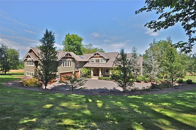 OPEN SUN AUG 12TH 1-4PM. Gorgeous Craftsman-style home on 5acre, private lot. Country setting w/easy hwy access. Incredible craftsmanship throughout. Stunning wood & stone work inside & out. 2story stone fireplace in great rm. Large eat-in kitchn w/prof-grade appliances, granite countrs, island & bar. Huge bonus rm w/sep theater rm & bar. Natural & manicured landscaping w/pond.