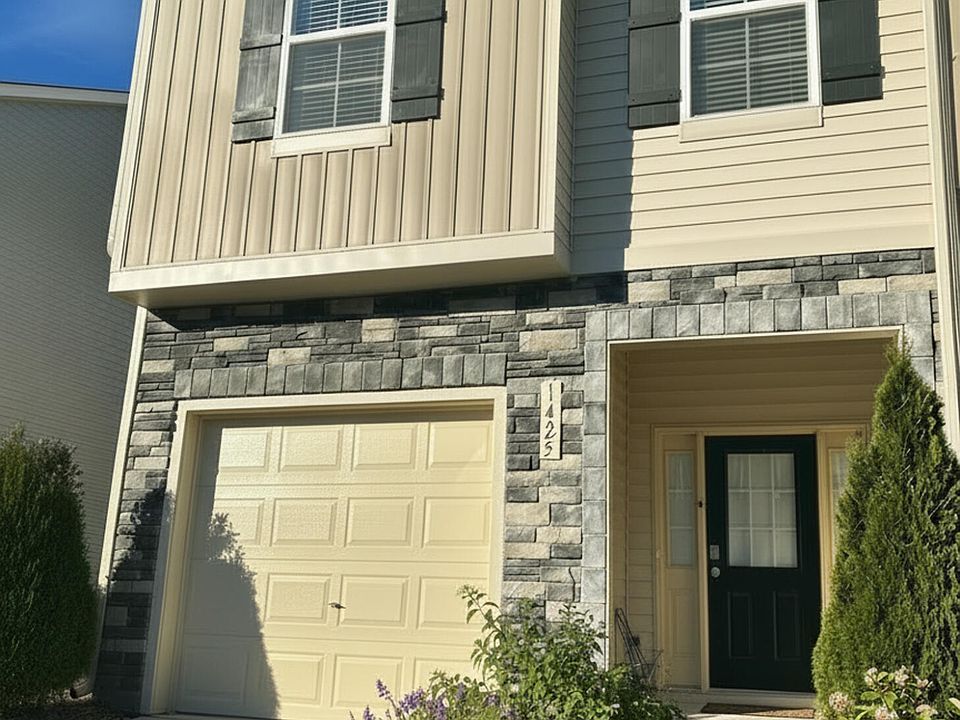Beautiful 3BR/2.5BA end-unit townhome built in 2021, ideally located near RTP, Downtown Durham, and RDU Airport — with Publix just minutes away! The open-concept main level is filled with natural light from extra windows and features a spacious living area, dining space, and a modern kitchen with granite countertops, island, and stainless steel appliances. Finished wood stairs lead to the second floor, which also features hardwood flooring throughout. The owner's suite offers a walk-in closet and dual vanity bath with separate shower. Enjoy outdoor living on the fenced patio or covered front porch. One-car garage and driveway for added convenience. Move-in ready home offering low-maintenance living in a prime Durham location! Shepherds Square is about 4 miles from the Durham Bulls stadium and the heart of Downtown, with easy access to major highways for a smooth commute anywhere in the Triangle.