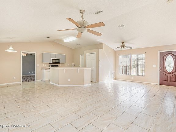 **Roof to be installed prior to closing with an acceptable offer**Solid 3BR/2BA concrete block home built in 2005 with a Rheem HVAC installed 8/2024, water heater 2/21. This well-maintained property features a desirable open and split floor plan, tile flooring throughout the main living areas, and wood laminate in all bedrooms. The spacious kitchen includes a pantry and opens to the living and dining areas—ideal for entertaining. Enjoy the enclosed back porch with vinyl windows, perfect for year-round use. The garage includes sliding screen doors for added ventilation. You'll also appreciate the convenience of an indoor laundry room. The yard features mature fruit trees, offering shade and seasonal harvests. Convenient, functional, and move-in ready—don't miss this opportunity!