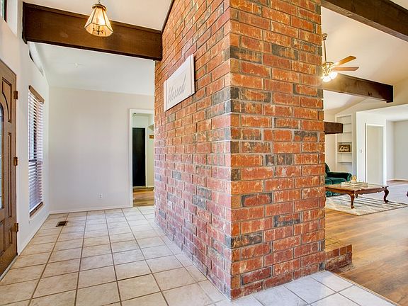 This unique 3 bed/2 bath brick home has SO much character!! A few cosmetic updates and it will be gorgeous! Located on a quiet street in Quail Creek addition on a nice sized lot. The front porch area will be darling with some landscaping and patio furniture to enjoy morning coffee. Inside has sprawling vaulted ceilings with big wood beams, nice updated vinyl wood flooring and fresh paint inside and out. All the walls have been painted a neutral color, ready for you to decorate and make it your own. New 2" wood blinds throughout. Spacious bedrooms with walk in closets. Primary bedroom has vaulted ceilings and opens up to double vanities and 2 closets, stand up shower with a new glass door, & lots of cabinets. Roof was replaced about 5 years ago. New water softener & R/O system from Culligans about a year ago. New overhead garage door. Water well to run the sprinkler system. A really great home, schedule your tour today!