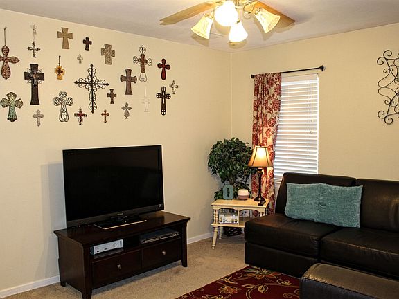 Fresh to market! Picture perfect and move in ready 3 bedroom home that's nestled on a shady lot in Sunset Terrace Subdivision. It features a flexible floor plan with an updated kitchen with breakfast bar and large open dining room (or second living area!), a welcoming living room that's ready for family movie night, spacious master suite, utility room with extra space for pantry storage or a second fridge, and a covered patio, storage shed, trampoline and swing set that all remain with the sa...