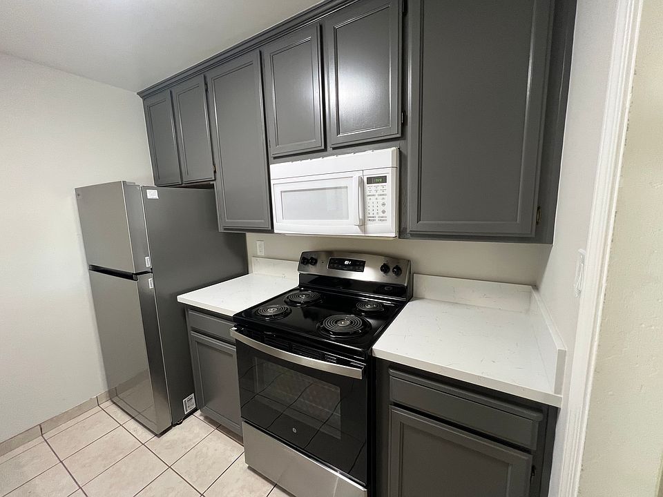 Fresh apartment that's move-in ready. This apartment has been updated throughout with new shower, new quartz countertops in kitchen and bathroom, new stainless-steel appliances and freshly painted. Includes a private patio, and a shared enclosed garage space. This apartment is centrally located close to Modesto Junior College and near freeway access. 1 year lease. Tenant is responsible for utilities. First month's rent and deposit required upon signing. Due to allergy considerations, pets and smoking are not permitted. A refrigerator and washer/dryer are included with this rental unit.