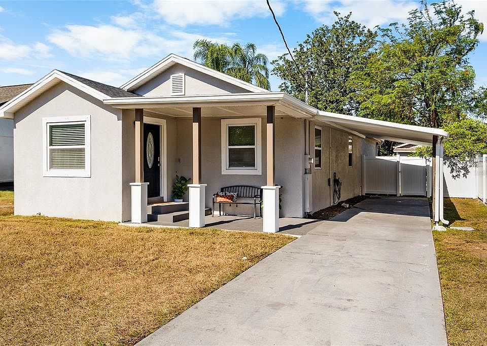Discover your new home in the vibrant heart of Tampa! This stunning 4-bedroom, 3-bathroom residence offers an ideal mix of modern updates and thoughtful design. Conveniently located near shopping, dining, healthcare facilities, Tampa International Airport, and major attractions like Raymond James Stadium, malls, and downtown Tampa, this property is perfectly situated for convenience and comfort. Recently renovated, this home features a newer roof, exterior, and interior paint, new doors, a newer water heater, and a state-of-the-art electrical panel. The kitchen gleams with new stainless-steel appliances, stylish shaker cabinets, a striking subway tile backsplash, and ample granite counter space—ideal for everyday living and entertaining. The open-concept layout includes large windows that fill the space with natural light, highlighting the beautiful wood-look ceramic flooring throughout. This residence stands out with two spacious master suites and carefully crafted details, including barn doors, wood columns, and custom tilework. Expansion provides additional living space, all completed with proper permits and inspections by licensed professionals. Inside, you'll find modern updates, including plumbing, vanities, light fixtures, and a newer A/C system, ensuring maximum comfort. Enjoy outdoor living with a fenced backyard, an inviting front porch, and a carport for two vehicles, plus additional driveway space. The backyard features a versatile storage unit that can easily be converted into an in-law suite or rental unit, offering excellent potential for additional income. With no CDD or HOA fees, this home provides flexibility and peace of mind.
