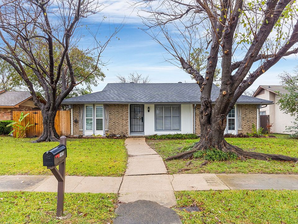Welcome home to this beautifully updated 3 bedroom 2 bath charmer in Northlake Estates, the perfect starter home or downsizing opportunity in the heart of Garland. With a spacious 1,471 sq ft layout, a large open living room with vaulted ceilings, and a cozy brick fireplace, this home immediately feels inviting.